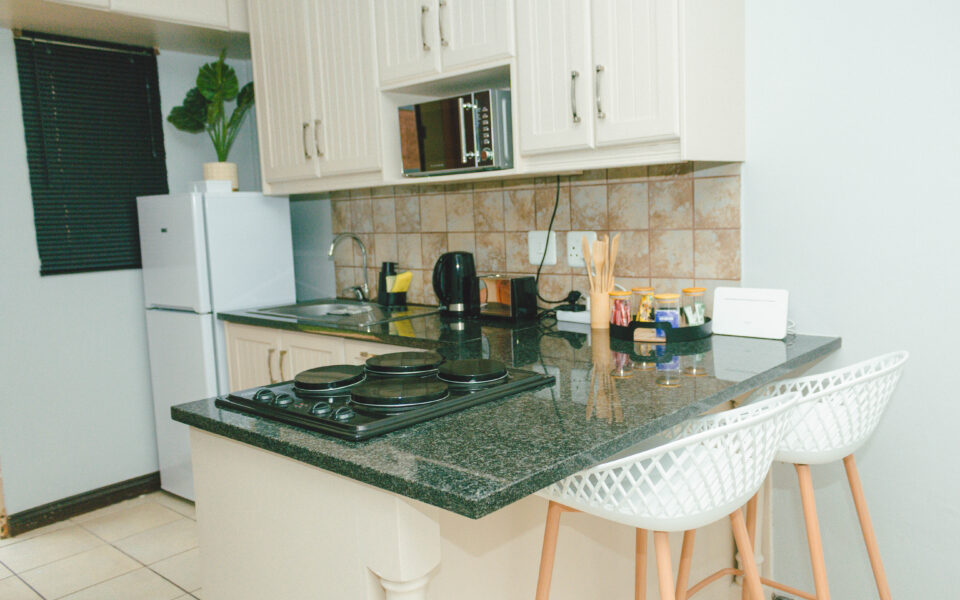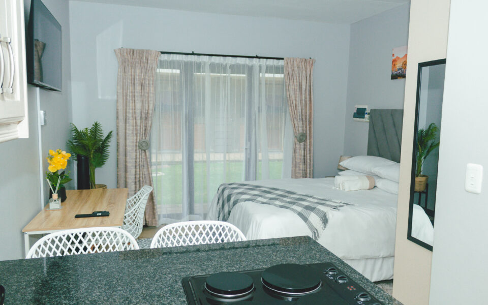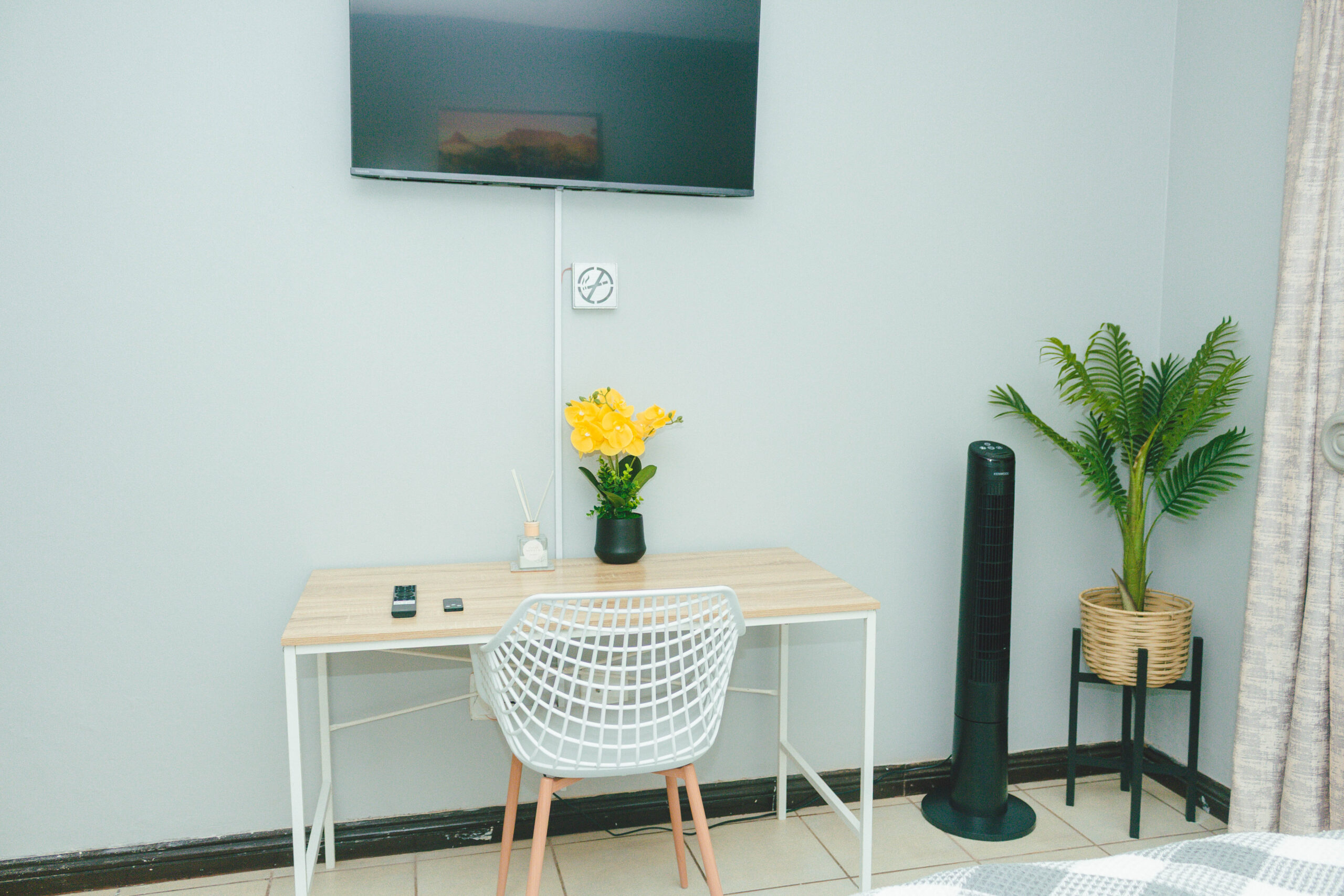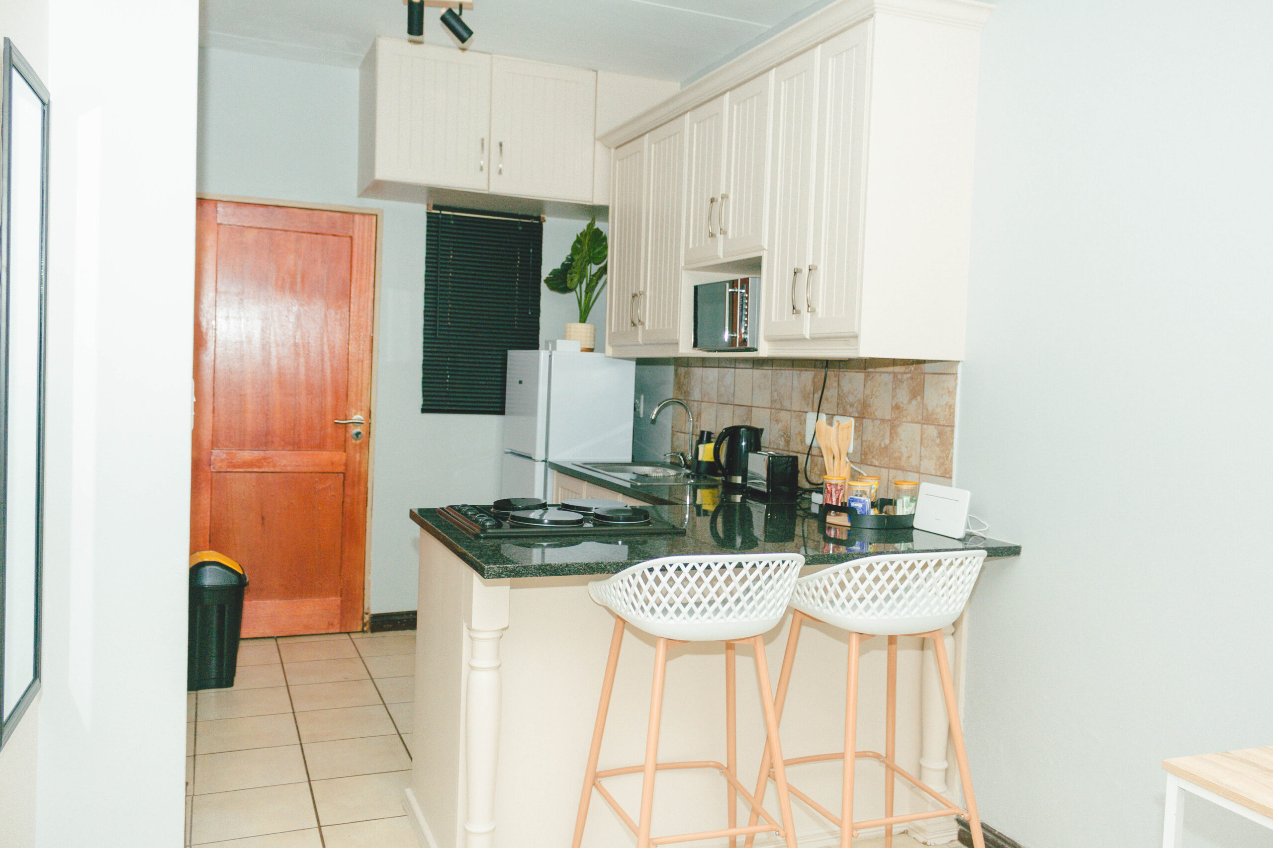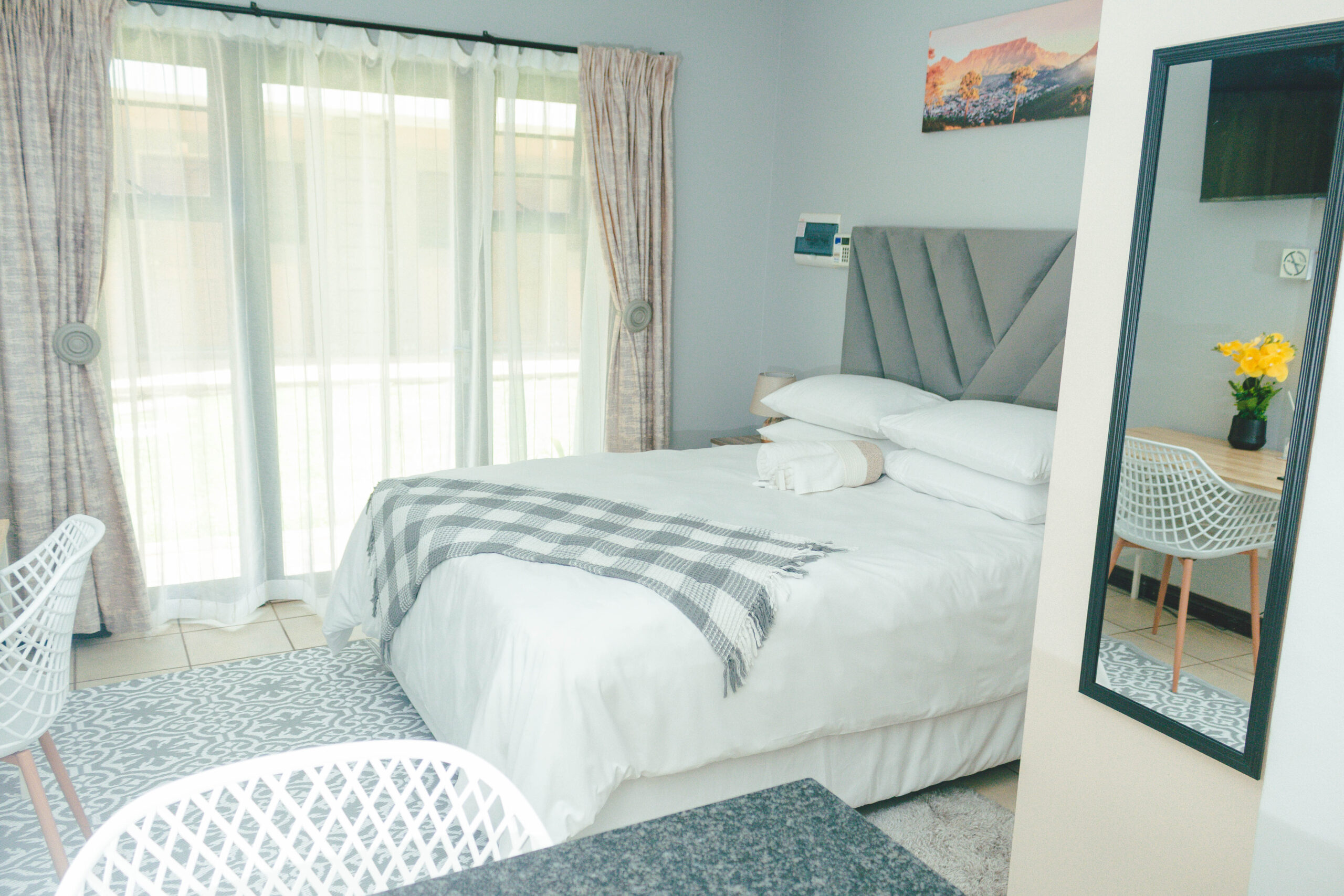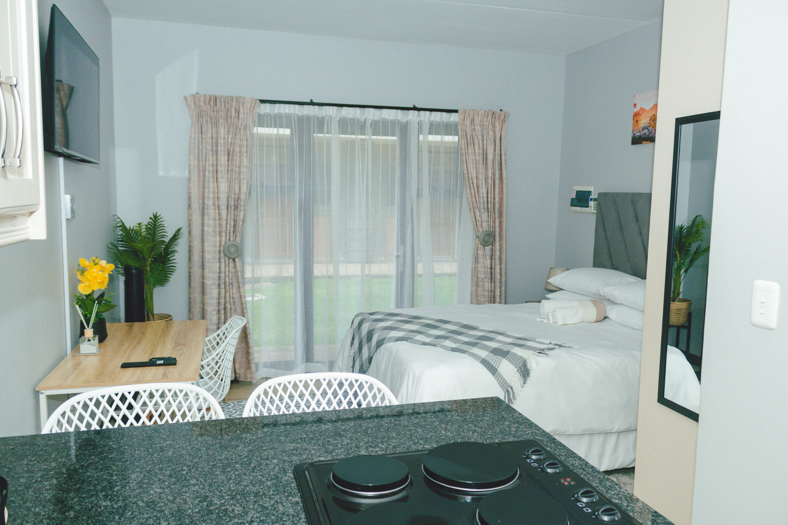 Comfortable Living Space: The Prestige Studio at Bains Lodge in Bloemfontein offers a one-bedroom apartment with a garden and terrace. Guests enjoy free WiFi, air-conditioning, and a fully equipped kitchen with modern appliances.